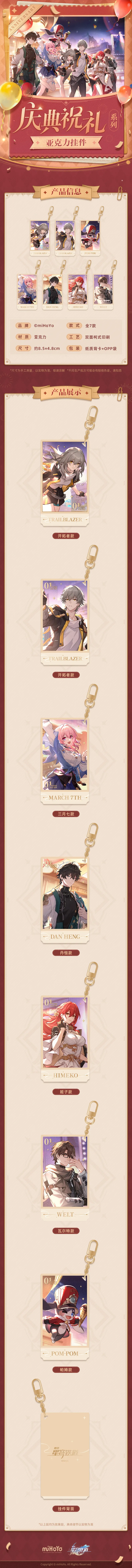 Móc khóa acrylic sự kiện Kỷ Niệm 1 Năm - Honkai Star Rail