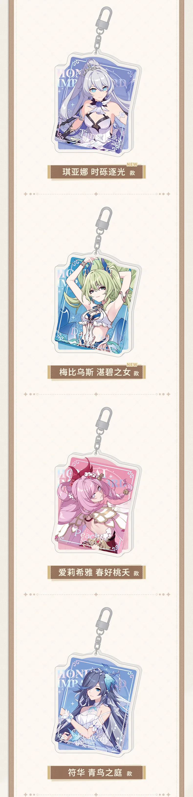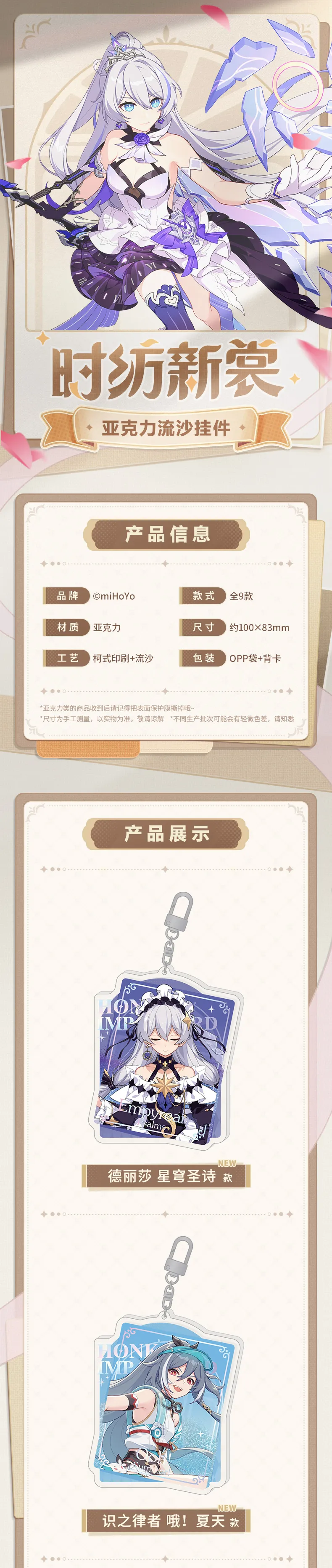 Móc khóa acyrlic cát chảy loạt chủ đề Trang Phục Mới Theo Thời Gian - Honkai Impact 3